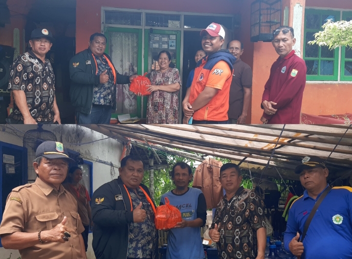 Kades Sampalan, Jamaludin, Beri bantuan warga terdampak banjir. (AlexaPodcast.ID)