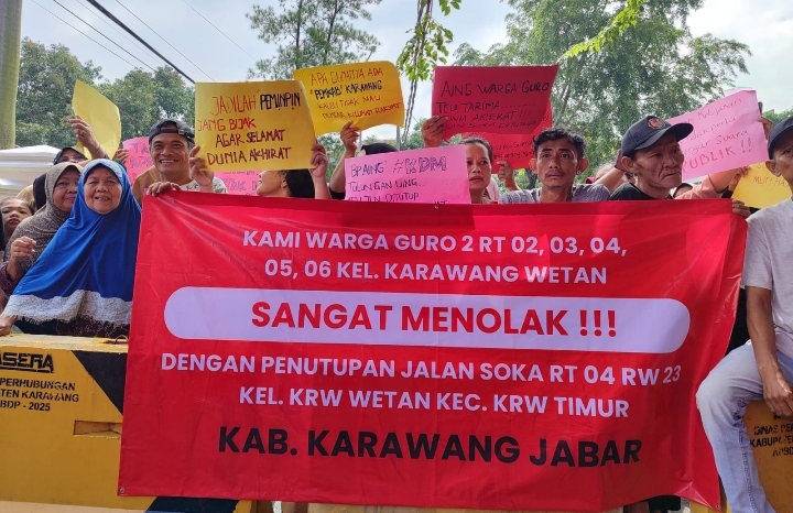Warga Guro 2 Gelar Aksi, Tanpa Sosialisasi Penutupan Jalan Stadion Karawang Diprotes